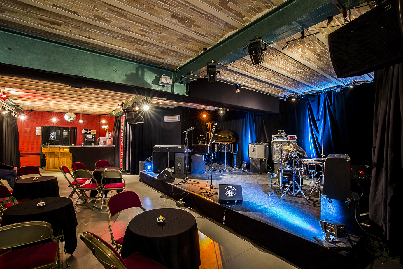 Photo du lieu : AJMi description du théâtre Située aux pieds du Palais des Papes et au premier étage de La Manutention, bâtiment qui accueille 3 structures culturelles dont le Cinéma Utopia, l'AJMi est une association et salle de concert spécialisée en jazz et musiques improvisées. Scène permanente d'Avignon, elle organise toute l'année concerts, ateliers, conférences et événements autour de ces musiques. description de la salle La salle de l'AJMi se situe au premier étage de La Manutention et possède 80 places assises. L'accueil des publics se fait au rez-de-chaussée du bâtiment, aux pieds des Escaliers Sainte-Anne. Lieu convivial et intimiste, l'AJMi est un cadre idéal pour découvrir une programmation musicale. informations 4 Rue des Escaliers Sainte-Anne - 84000 AVIGNON Tous les lieux Informations complémentaires salle Modalités contractuelles proposées aux compagnies ou structures de production participant au festival Location : Oui Coproduction : Non Co-réalisation avec minimum garanti : Non Co-réalisation sans minimum garanti : Non Accueil gracieux : Non Achat : Non Facturez-vous des frais de communication ? : Non Services inclus proposés aux compagnies ou structures de production participant au festival Déclaration et réglement aux sociétés d'auteurs : Non Accueil de troupes amateur : Non Temps d'installation avant le festival (en heures) : 8h Temps de démontage après le festival (en heures) : 8h Accueil de spectacles de + d'1h45 : Non Nombre de services de montage quotidien : 1 Temps de montage quotidien minimum (en minutes) : 30min Temps de montage quotidien maximum (en minutes) : 50min Billetterie centralisée : Oui Droit de garde : Non Quota d'invitations : Oui Loges : Oui Douches : Non WC : Oui Stockage : Non Surface de stockage (en m²) : 0m² Matériel son Console : Oui Système d'interphonie : Non Lecteur CD : Oui Lecteur USB : Non Nombre d'entrées : 24 Nombre de sorties : 6 Nombre de micros : 10 Nombre d'enceintes salle : 2 Nombre de retours plateau : 4 Matériel lumières Jeu d'orgue manuel : Oui Jeu d'orgue à mémoire : Oui Vidéo projecteur : Oui Écran ou cyclorama : Oui Nombre de projecteurs communs : 12 Nombre de circuits : 6 Puissance électrique (en kW) : 30kW Créneaux Nombre de créneau minimum : 1 Nombre de créneau maximum : 4 Durée de créneau minimum (en minutes) : 30min Durée de créneau maximum (en minutes) : 70min Créneau disponible : Non Informations générales Rez de chaussée : Non Gradin : Non Chaises : Oui Fauteuils : Non Banquettes : Non Accès PMR : Non Ascenseur : Non Rampe permanente : Non Rampe amovible : Non Balcon : Non Pendrillonage : Non Rideau de scène : Non Rideau de fond : Oui Perches : 4 Ouverture (en mètres) : 6m Profondeur (en mètres) : 3.5m Hauteur sous grill - scène (en mètres) : 2.60m Climatisation : Oui Plein air : Non Chapiteau : Non Infos salles Type de programmation : Chanson / Musique Jauge : 80 Informations complémentaires théâtre Services généraux proposés au public Service de réservation téléphonique : Non Billetterie centralisée et informatisée : Oui Possibilité de régler par carte bancaire : Oui Possibilité de régler par chèque : Oui Possibilité de régler par espèce : Oui Travail de communication sur les réseaux sociaux : Oui Programme du théâtre version papier : Non Programme du théâtre en ligne : Oui Personnel d’accueil du public : Oui Personnel de sécurité : Non Buvette : Non Petite restauration : Non Toilettes : Oui Boucle à induction magnétique - Système d'aide à l'écoute pour les personnes souffrant de déficience auditive : Non Modalités contractuelles proposées aux compagnies ou structures de production participant au festival Service de presse : Non Service d’accueil des professionnels : Non Régisseur général : Oui Connexion wifi : Oui Équipe de tractage : Non Équipe d'affichage : Non Hébergement des équipes artistiques : Non Informations générales Lieu ouvert à l'année : Oui Accueil de résidences de création dans l’année : Non Accueil d’expositions pendant l’année : Non Lieu éphémère : Non Numéro de téléphone de réservation 1 : 07 59 54 22 92 Numéro de téléphone de réservation 2 : Numéro de billetterie téléphonique 1 : Numéro de billetterie téléphonique 2 : Fermeture hebdomadaire du lieu pendant le festival : Mercredi Contact administratif Site Internet : https://www.ajmi.fr/ Courriel administratif : adm@ajmi.fr Téléphone administratif : 07 59 54 22 92 Courriel technique : regisseur@ajmi.fr Téléphone technique : 06 60 61 32 53 Courriel Public : info@ajmi.fr Nom responsable sécurité : Bertrand Prénom responsable sécurité : Bruno Téléphone responsable sécurité : 06 60 61 32 53 Email responsable sécurité : regisseur@ajmi.fr
