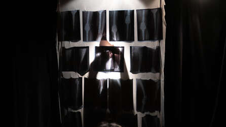 Corps à corps est un seul-en-scène intimiste, né de l'amitié entre Yugo Yamada, metteur en scène survivant d'un ostéosarcome, et Camille Pech de Laclause, autrice du témoignage. Le dispositif scénique minimaliste (un rideau de radiographies, un drap et un cube) laisse toute la place à l'imaginaire et à la présence brute et sensible de l'actrice, Marine Secchi. Une œuvre universelle, une ode à la vie qui renaît là où tout semble condamné.