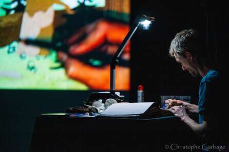 Les Parcheminiers sont nés de la rencontre entre une danseuse classique et un auteur de bande dessinée et de leur envie de se rejoindre sur scène. Ensemble, ils inventent un format inédit : le spectacle narratif où le dessin crée un espace, une temporalité et un mouvement qui appellent la danse.
