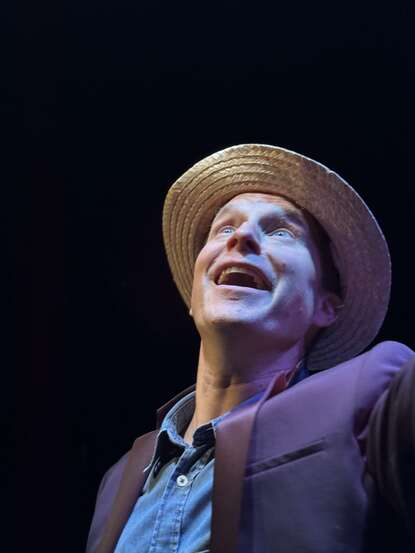 Seul en scène, Guillaume Marquet donne vie à ce fan et à celles et ceux qui ont gravité autour de l'astre — Jean-Claude Camus, un stadier, Léon Smet, Sylvie Vartan, un chorégraphe, Nathalie Baye, Maurice Chevalier… Le chanteur lui n’apparaîtra jamais. Car l’idole, si tout le monde en parle, personne ne peut vraiment la saisir.