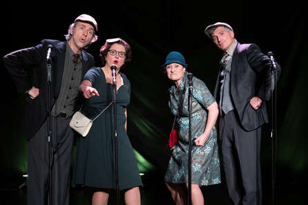 Quatre chanteurs déjantés revisitent avec panache le style Barbershop… en français ! Virtuoses, drôles et bourrés d’énergie, ils enchaînent prouesses vocales, bruitages bluffants et harmonies à couper le souffle. Portés par la mise en scène pétillante de Sophie FORTE, ces joyeux lurons mêlent comédie, performance et émotion dans un tourbillon musical aussi hilarant que touchant.