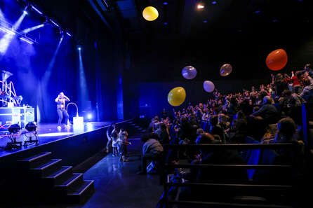 Un levier surprise, un curseur théâtre, un bouton chanson et une multitude de connexions surprenantes transforment rapidement la salle de spectacle en parc d’attractions.Un moment magique pour les petits qui chantent, dansent et participent à un spectacle familial, ludique et interactif, avec des chorégraphies adaptées aux enfants.