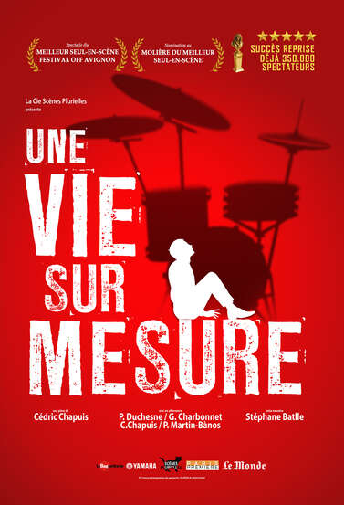 Succès public et critique depuis de nombreuses années, Une vie sur mesure est un seul-en-scène musical d’une rare intensité. Porté par Adrien, personnage singulier et inoubliable, le spectacle raconte comment la batterie devient un refuge, un langage, une voie de salut. Entre virtuosité, humour et émotion pure, cette œuvre emblématique touche au cœur et laisse une empreinte durable.