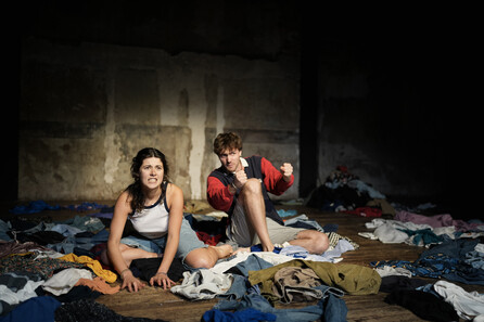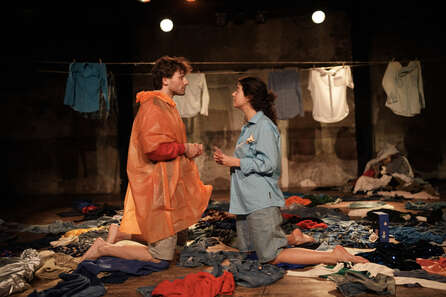 Dans le jardin fleuri de leur maison d’enfance, sous le soleil et au son des cigales, Camille et Étienne, frère et sœur, se retrouvent pour refermer une blessure ancienne : la disparition en mer de leur père marin-pêcheur quand ils étaient enfants. Ils décident de couler au large un coffre rempli de ses habits, créant la tombe qu’ils n’ont jamais eue. La pièce traverse cette journée singulière, et raconte la tentative de dire au revoir à celui qui n’est jamais vraiment parti. Dans un décor peuplé de vêtements et de souvenirs, l’imaginaire s’invite, et Camille et Étienne célèbrent la vitalité de ceux qui restent.