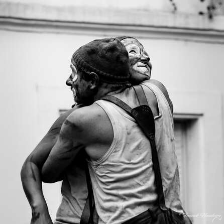 Le personnage du clown ainsi que la musique et la danse prennent une place importante dans leur travail.