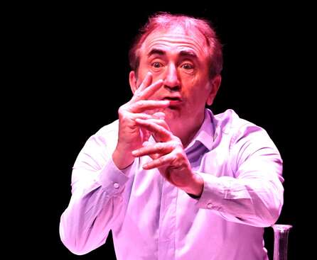 Il entre en scène dans la peau d'on ne sait qui. : Un instituteur proche de la retraite? Un Conférencier? Un Comédien? Lui-même peut-être? Qui sait?