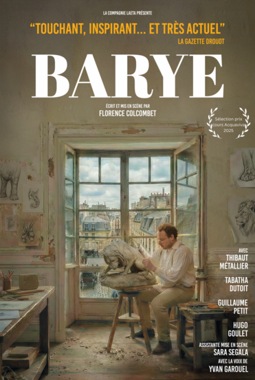 Barye, est l’histoire vraie d’un artiste qui veut rester libre dans un monde qui cherche à le contraindre. Mais c’est surtout une histoire profondément humaine : celle de quelqu’un qui chute, doute, s’accroche et finira peut-être par être entendu. Un spectacle pour ceux qui, habités par leur vocation, doutent et choisissent de persévérer encore et encore.