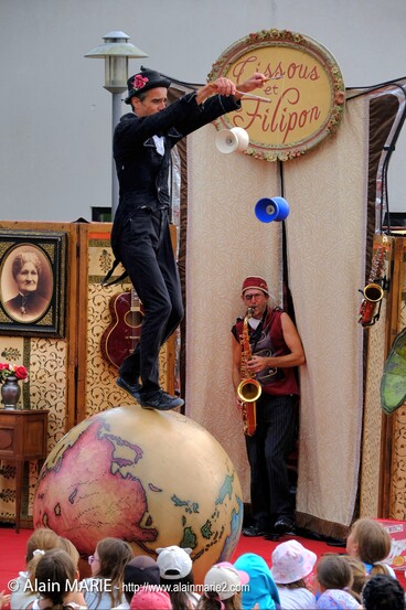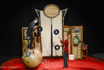 Retrouvez Filipon et Cissous (respectivement inspirés du clown blanc et de l’auguste) dans un décor au charme désuet des années trente. Au programme : du jonglage, de l'équilibrisme, des acrobaties et même du rap !