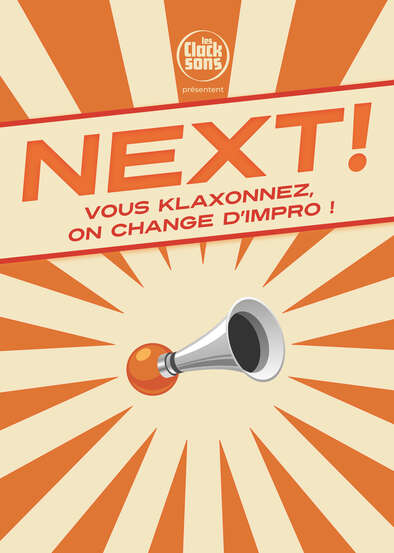 Un concept unique : le public est muni de klaxons, à tout moment, chacun.e peut influer sur une improvisation d'un coup de klaxon. Des histoires touchantes aux situations loufoques, "Next !" explore une variété infinie d'univers. Vous n'êtes alors plus simplement spectateur.ices : vous participez activement à la création d'un spectacle unique à chaque représentation.