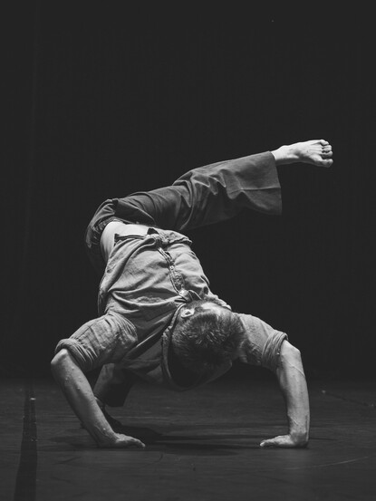 À travers l'acrobatie-danse, Jules Sadoughi explore la mémoire, les blessures et les joies qui façonnent nos gestes et notre vécu.